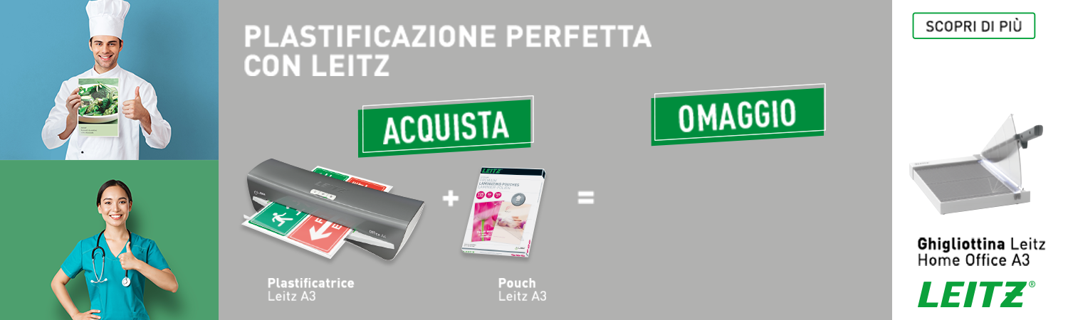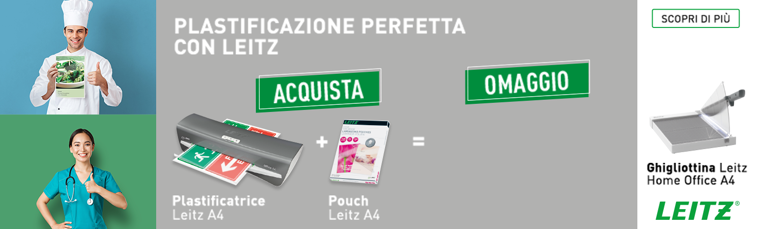 SCOPRI DI PIU'e richiedi subito in omaggio una Plastificatrice Leitz iLAM Home Office A4.